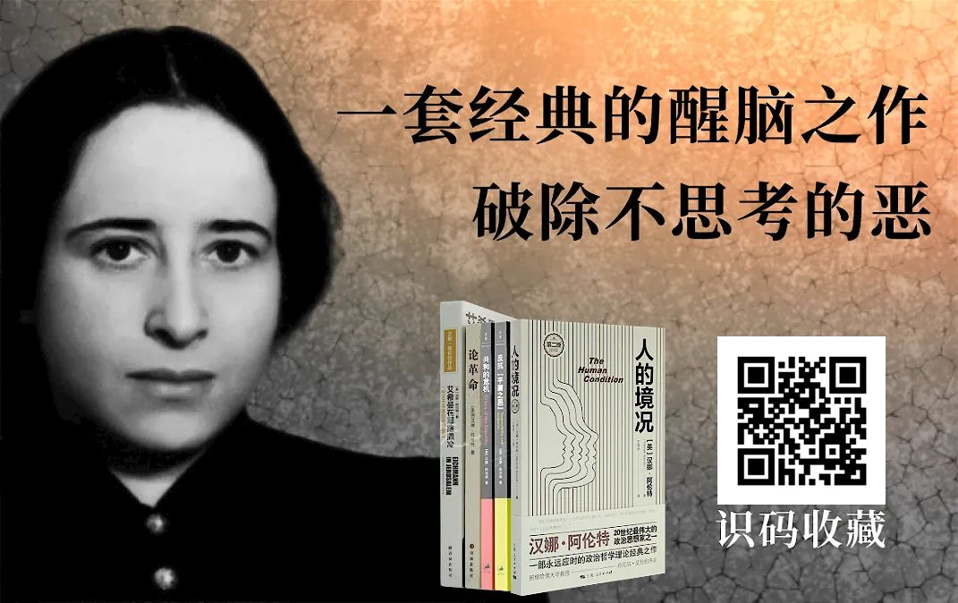 为此,本频道特别推荐“阿伦特作品集”,阅读阿伦特,寻找人性觉醒的光辉,警惕强权之恶,告别平庸之恶。在图书市场上,阿伦特作品的版本较多,翻译和出版的水准也良莠不齐,再加上近年来其作品陆续绝版,收藏她的作品越来越困难。先知书店有幸集齐阿伦特五部最经典的作品,推荐给书友们。识别下图二维码,即可一键收藏。