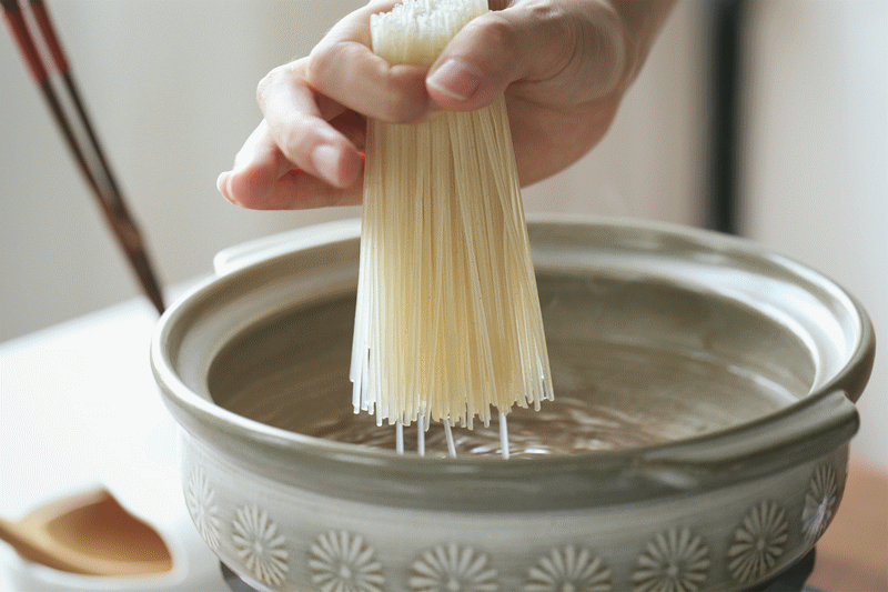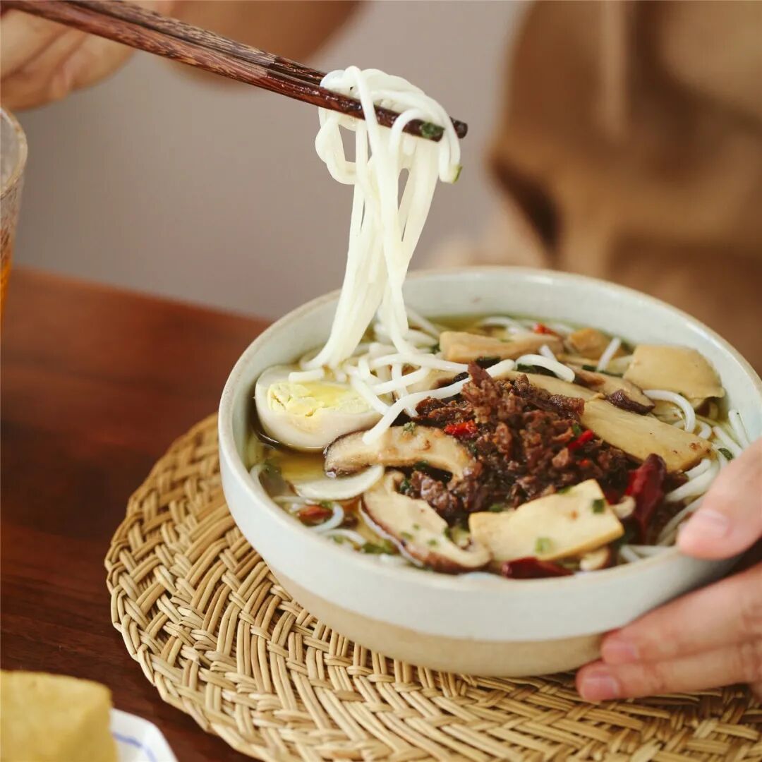 现在市面上常见的米线,或多或少加点其他食材或添加剂,一来是让米线口味变好,二来是减少成本。比如不少米线中会放入硼砂,以增加米线韧性、脆度、保水性及延长保质期。经过多次考量,我们选择了原料只有大米和水的米线,你能在里面吃出绵柔又纯粹的米香。