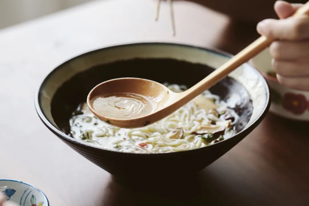 也可以先煮熟米线,过冷水沥干。再起锅煮松茸鸡汤底料和松茸料包,待其煮沸后把沥干的米线放入,米线和汤料一起再煮1至2分钟,让其入味,这样的米线吃起来口感偏爽滑。