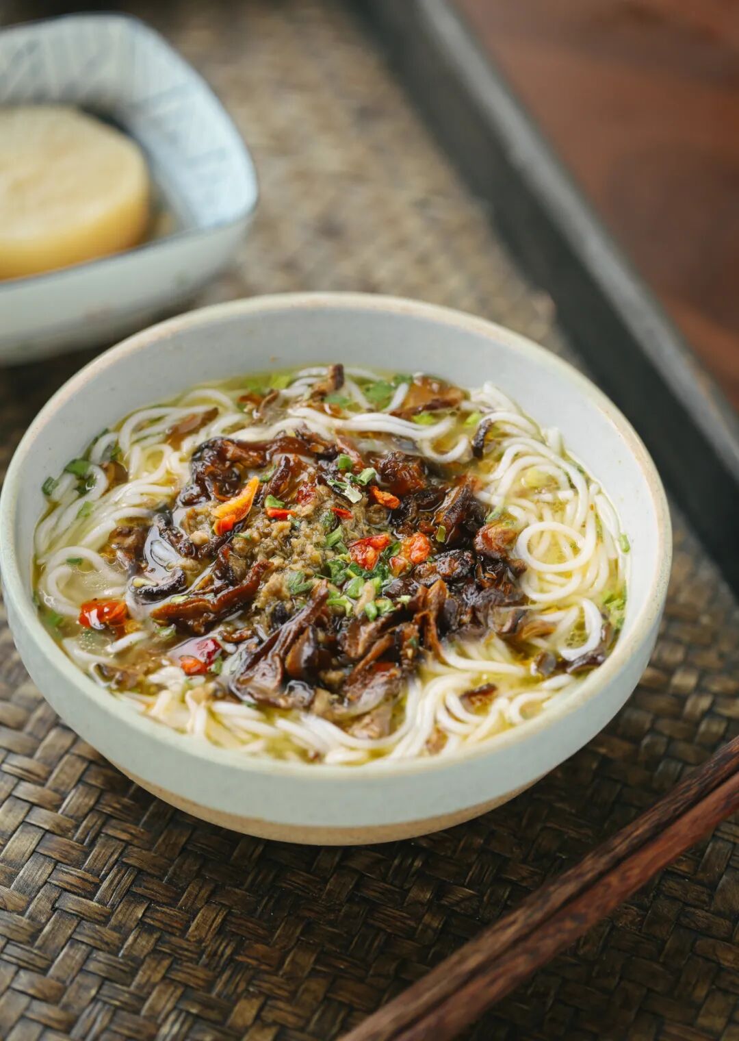 牛肝菌和黑虎掌菌的加入,让汤底越发鲜上一层,真是集天地鲜气于一碗,汤汁鲜美甘醇,米线顺滑Q弹,回味良久。