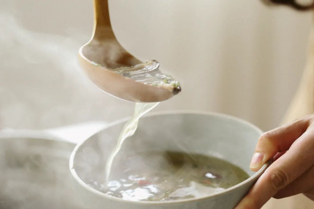 它的松茸鸡汤底汤,在熬制过程中没有添加味精等提鲜剂,香气自然浓郁,回归食物本初的味道。