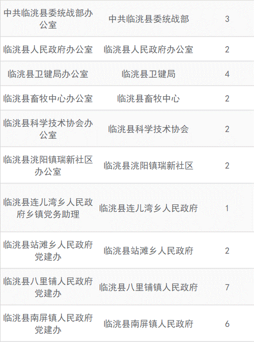 定西市临洮县:岗位总数:19个 招募人数:71人