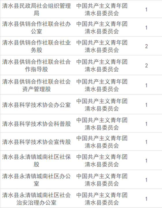 庆阳市镇原县:岗位总数:14个 招募人数:50人