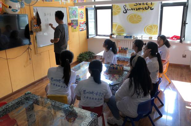 7月26日,实践团队对志愿者们进行了儿童教育学、心理学以及学龄儿童基础教育方面的培训。社会情感是儿童发展的情雨表,在儿童的心理发展中起决定性和指导性的作用。社会情感的任何障碍都会严重危害儿童的心理发展。志愿者们了解到了如何让孩子收获“社会情感”,尤其我们面对的是一群特殊的孩子,我们除了要无条件爱他支持他们以外,我们更要鼓励他们去和别的小朋友玩,尽可能了解社会与人相处。