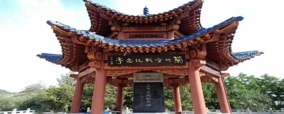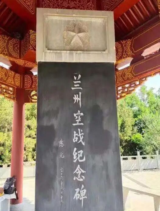 走上台阶,纪念亭正中矗立着一块"兰州空战纪念碑"。碑身背面的碑文详细记载了侵华日军为切断苏联援华通道,摧毁中国空军训练基地,打击我后方抗日之士气,对兰州等地出动战机、投放导弹等惨绝人寰的侵略暴行。同时碑文上也讴歌了英勇的中国空军与苏联援华志愿航空队联手并肩,在兰州上空与日寇血战的英勇壮举。碑文上还铭刻着"张君泽、罗曼诺夫"等55名在兰州空战中阵亡及殉难烈士的英名。在纪念亭南面台阶之中还有一座用俄文铭刻的纪念碑。
