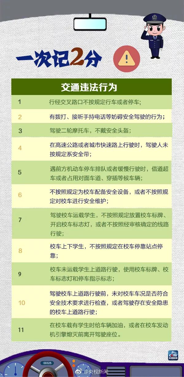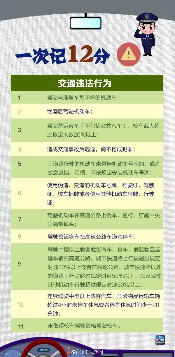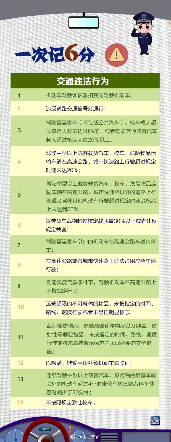 一份超全的交通违法行为记分表