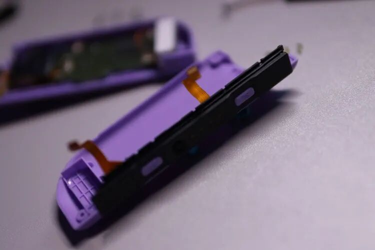 留给新手熟悉操作的游戏热身环节就此结束,下面开始喜闻乐见的断排线部分了。由于左 Joy-Con 在底部比右侧少一个 IR 运动传感器零件,结构上会稍微简单一些,因此我们再来对左 Joy-Con 进行魔改。