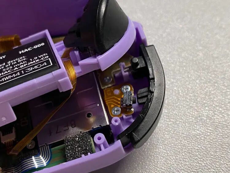 最后是中部面板的 ZL 键即相关主板转移——这里难的不是主板也不是排线,而是由于 ZL 键的卡扣设计得无敌紧,因而从 ZL 键外侧翘的时候,很容易把它底部的两根弹簧崩飞……如果你不想爬着满地找弹簧、或是去某宝上买弹簧零件的话,建议随便找个超市购物袋、把撬 ZL 键的工作挪到塑料袋里完成……🤦♂️