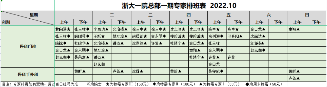 浙大一院专家门诊时间