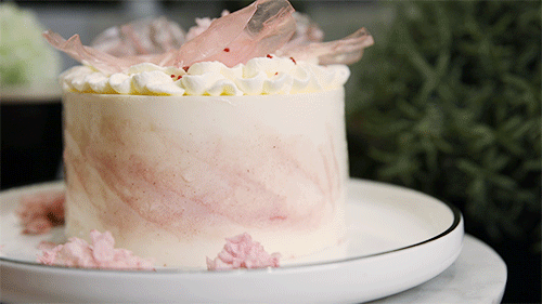 还有提升蛋糕粉嫩气质的这幅“油画”,由白巧奶油和草莓奶油“绘”成,围在蛋糕外,春日少女感十足!