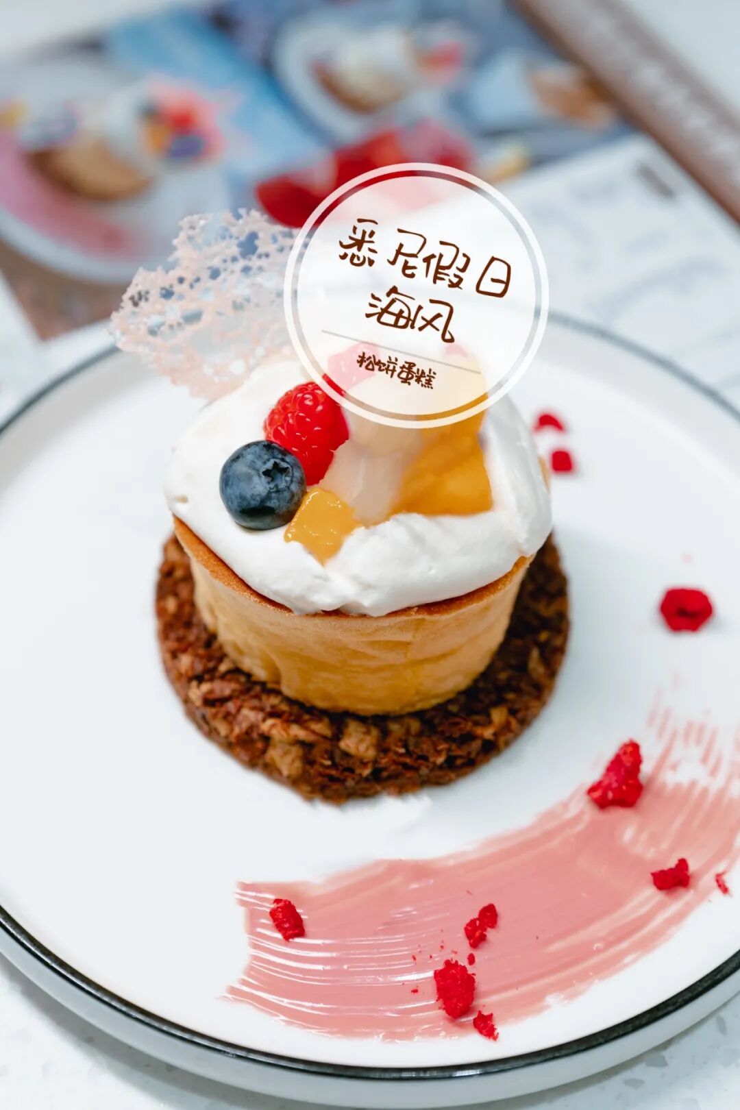 除了绯樱油画白巧慕斯,悉尼假日海风松饼蛋糕也是非常清新的一个选择。