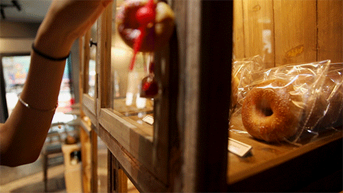 这家小店很有意思,因为店铺开在淘金小巷子路口就起名为「村口」,而老板就称自己为村长。无论是咸口贝果还是甜口贝果,这里都有!打开柜子自己挑就可!