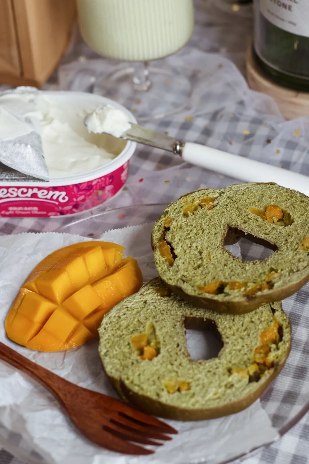 想要丰富口味,可以加入抹茶粉、可可粉等,或者加入核桃、奇亚籽等坚果增加口感。不过,这只是对无馅基础款而言,还有进阶版、高阶版的贝果,待会儿细说~