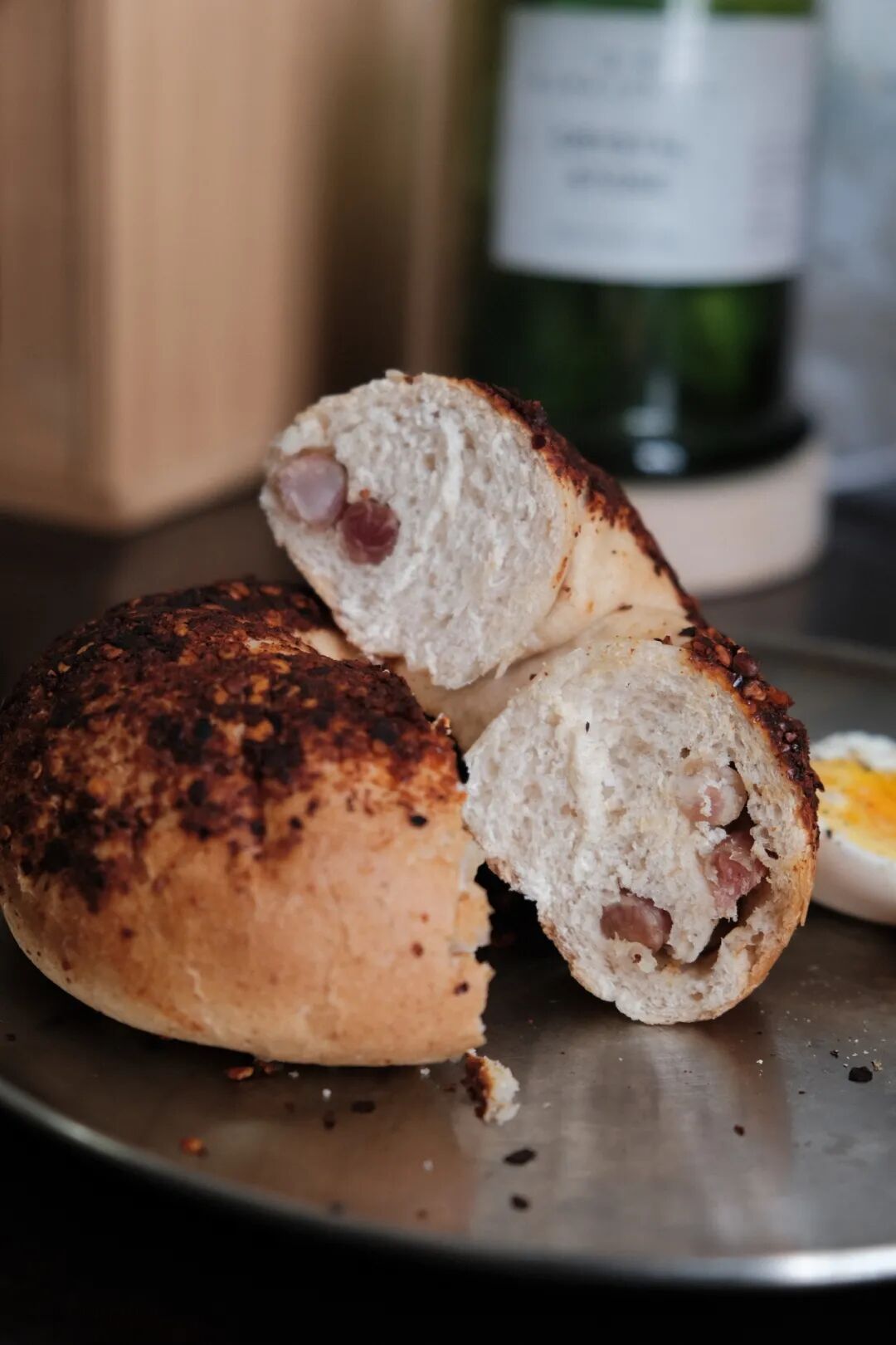 而近期才被挖出来的「村口 TEQUILA POP」蘑菇鸡肉贝果,这类英式风味的贝果,还是比较少见。