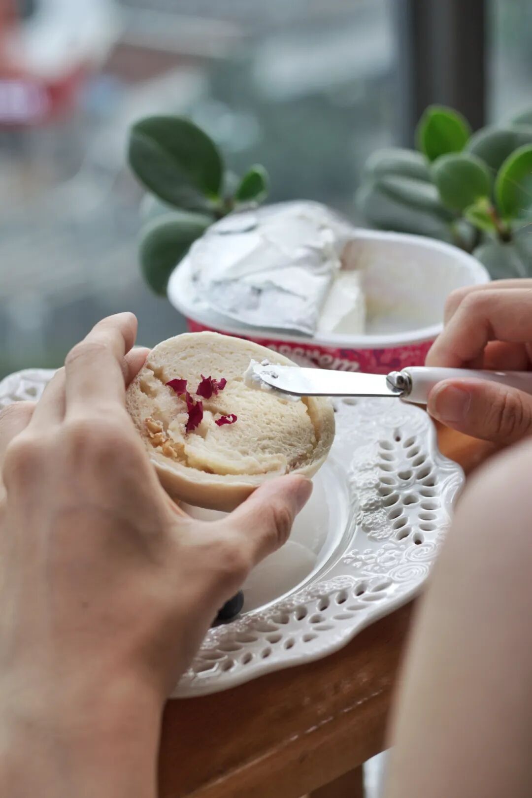 在国外,贝果常被人们当作早餐和Brunch。直接啃、抹奶酪是最普通,也是最能感受面包口感的方式,如果是卷入馅料或切开做成三明治的话,可玩性极高!