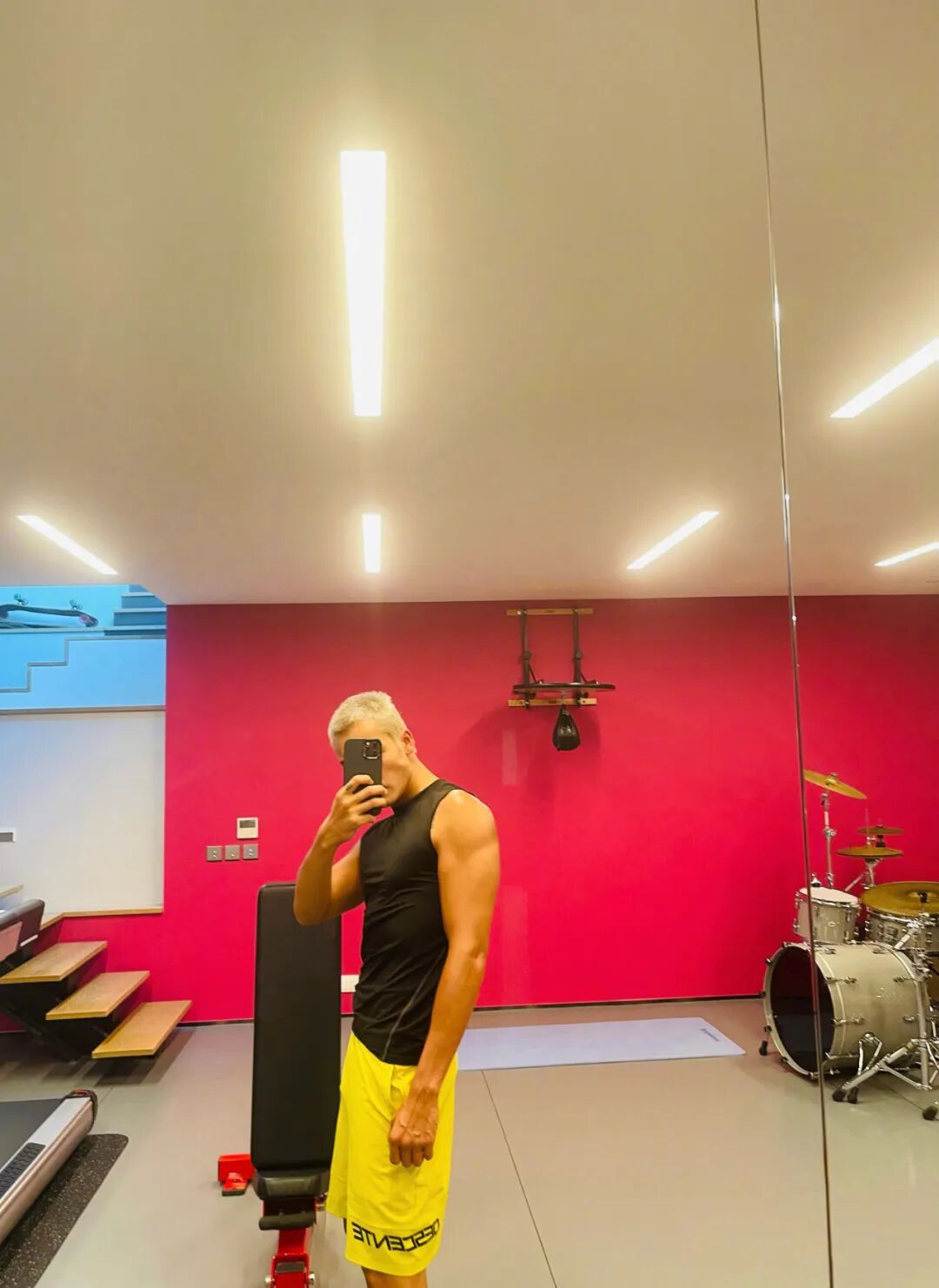 如果遮住脸,相信没人会想到照片里这个穿着黑色 polo 衫、皮肤黝黑的人,是陈伟霆——