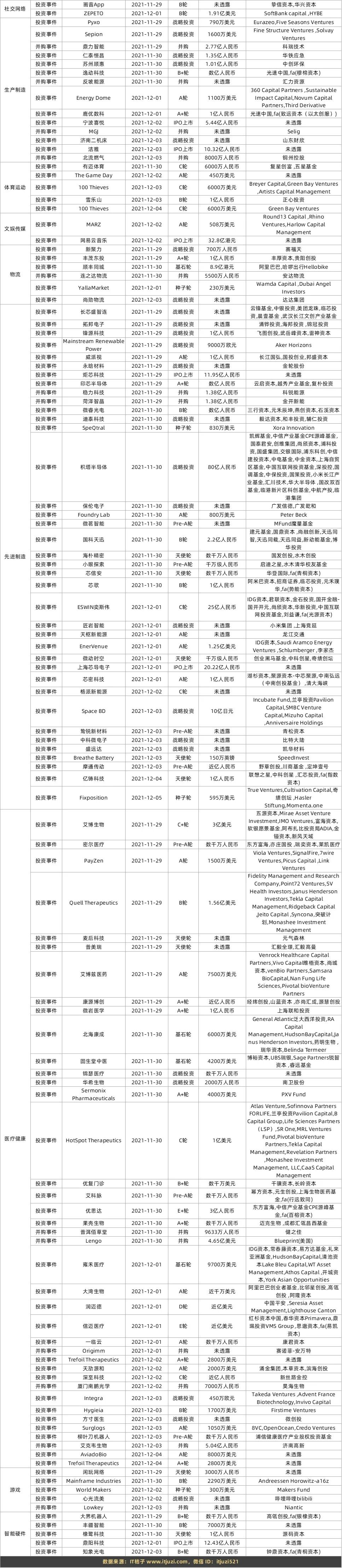上周全部投融资事件列