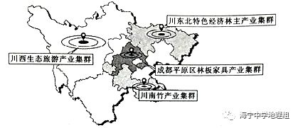 第2题,家具产业属于市场指向性工业,成都平原区人口稠密、城市众多,对市场的需求量大,市场需求量大是产业集群的主要优势。