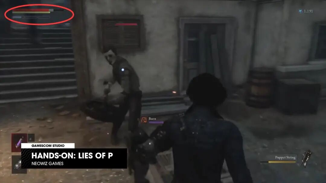 身为一款“魂like”游戏,又没有弹反,可以想见,本作的战斗端与《血源》相似的地方肯定不会只有“灰血”这小小的一点。那么接下来要说的部分,你可能也已经猜到了——没错,《匹诺曹的谎言》中的“处决”设计,与《血源诅咒》中的“内脏暴击”颇有异曲同工之妙。