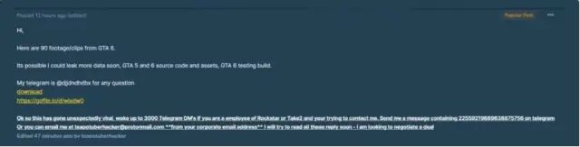 不过话说回来,虽然泄露的恶性事件已经发生,但好在此次黑客造成的损失并不大。对R星虽然会有影响,但并没有到伤筋动骨的程度,游戏的开发还在有条不紊地进行中。