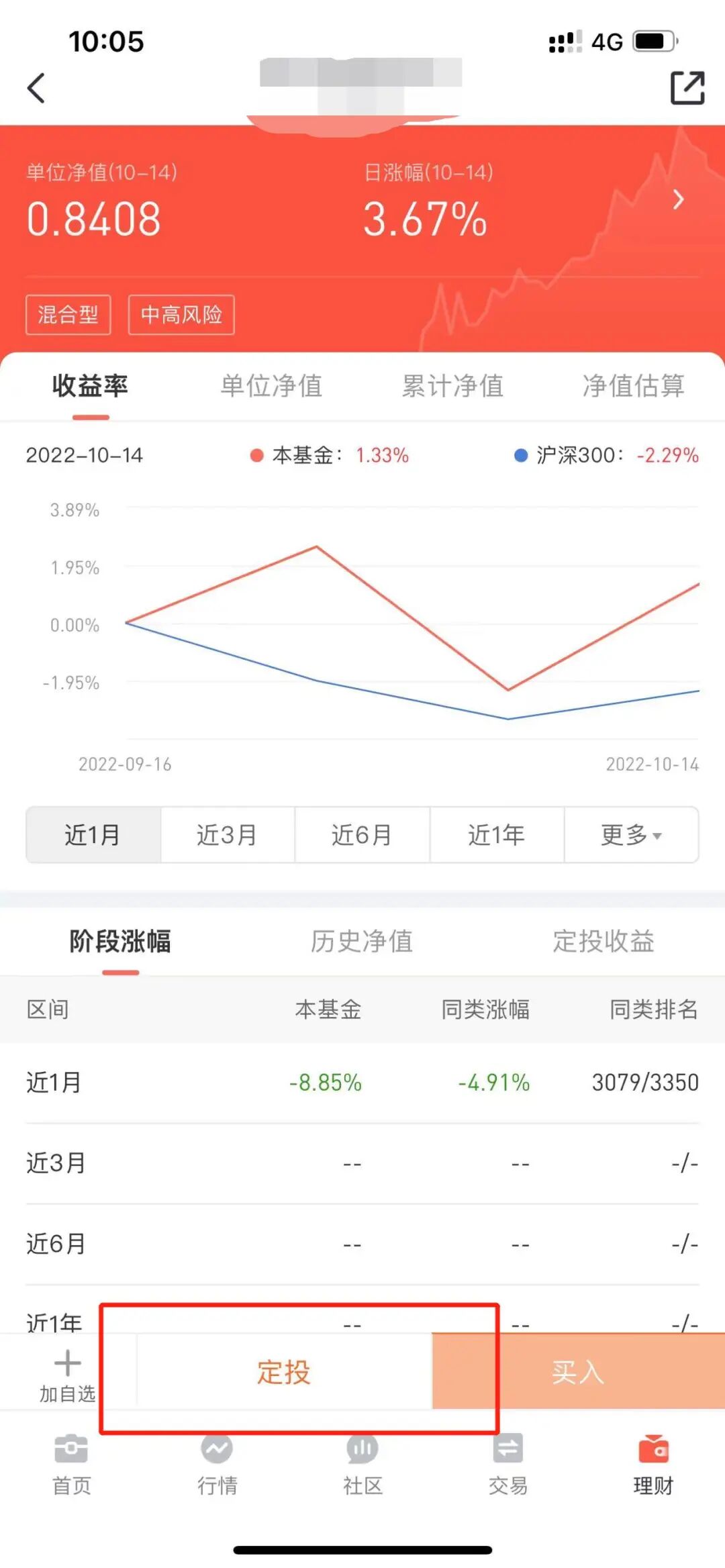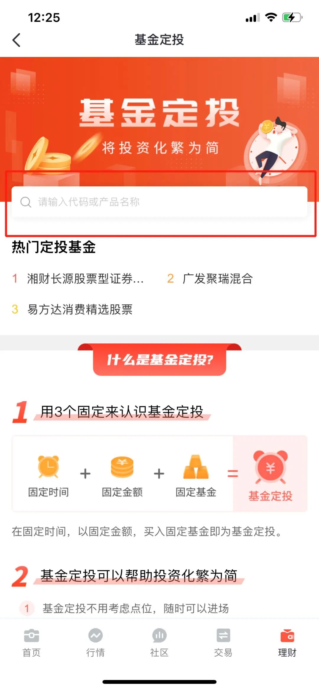 进入“基金定投”界面,填写基金代码或直接在基金详情页面点击“定投”功能。