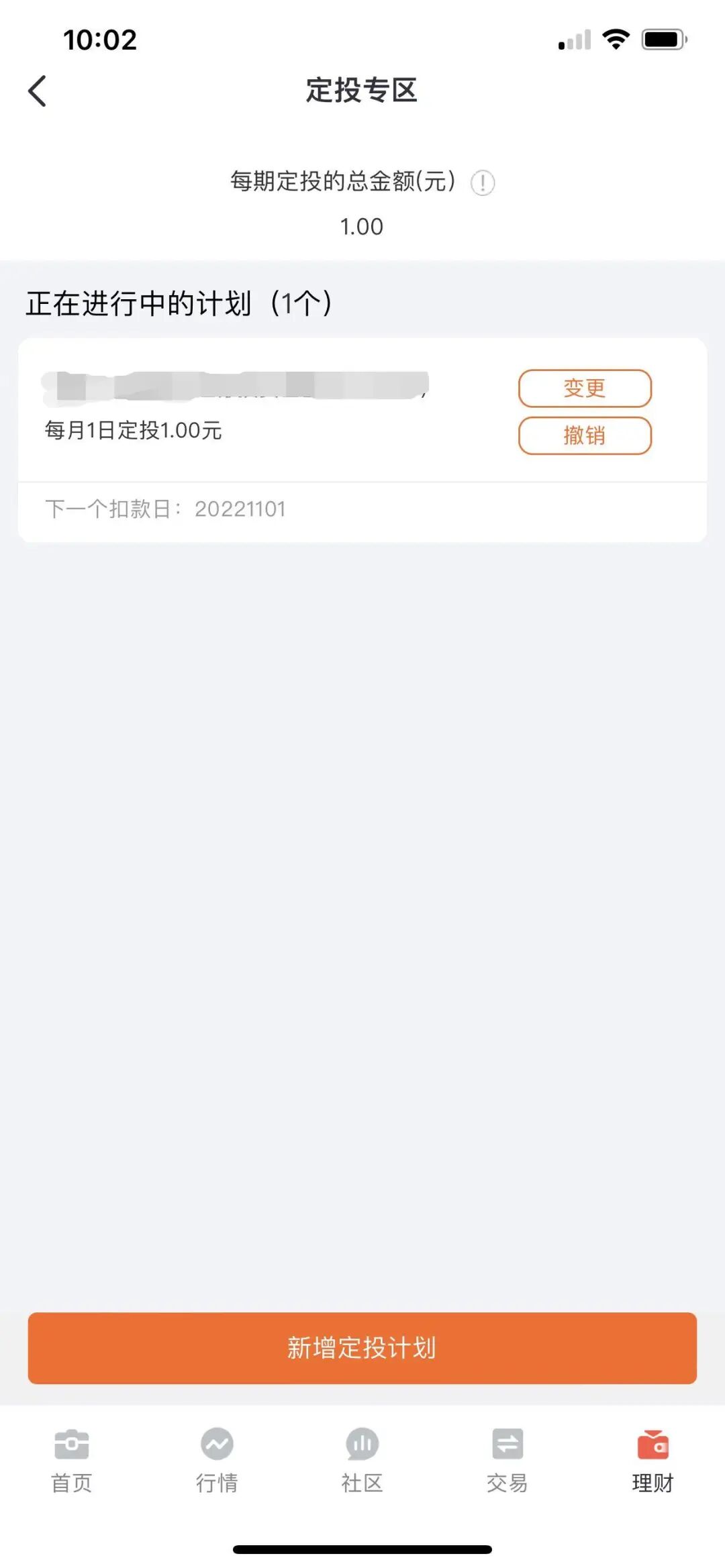 定投创建完成后,可在理财持仓页面-我的定投计划,查看已创建的定投计划,支持进行计划变更或撤销操作。