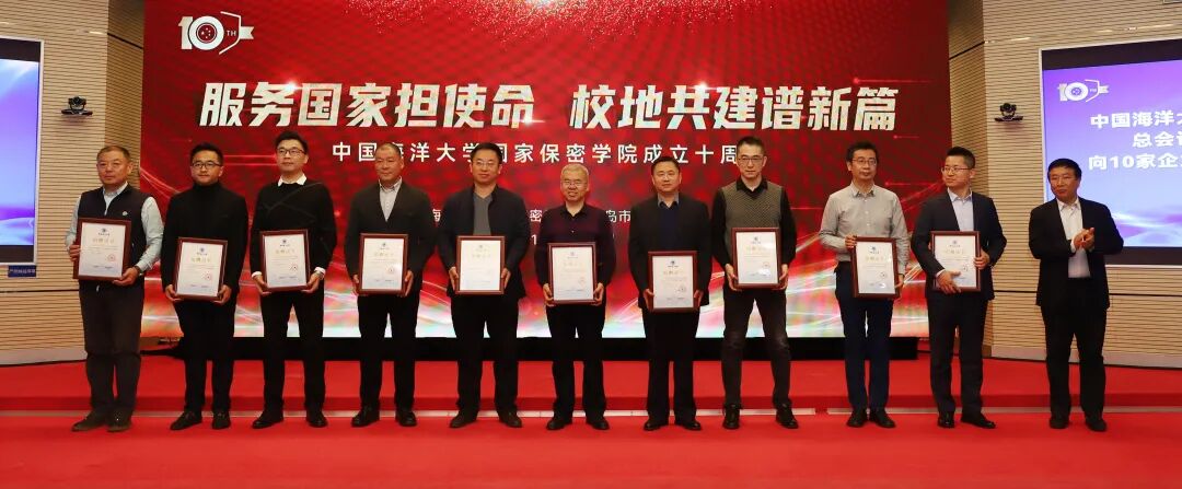 在国家保密学院成立十周年大会上为企业颁发证书