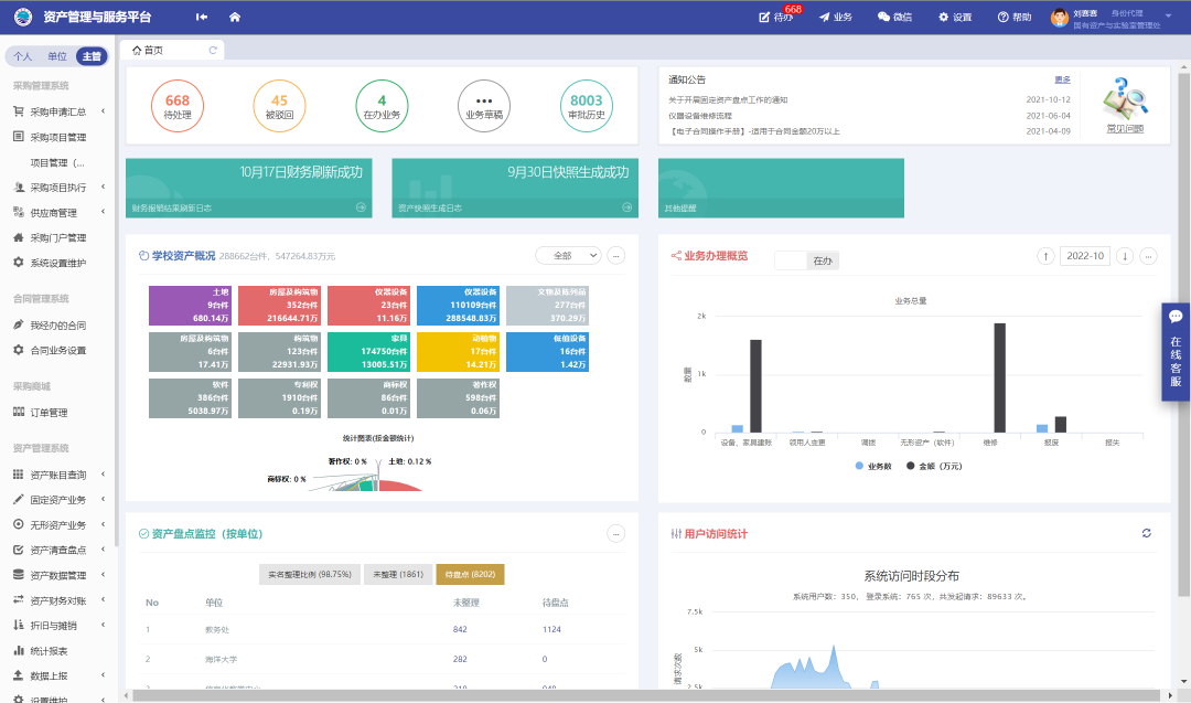 打造资产管理与服务平台,全面提升国有资产全生命周期管理信息化水平,为师生提供高效便捷服务
