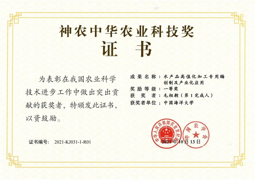薛长湖团队成果荣获2020年度国家科技进步二等奖