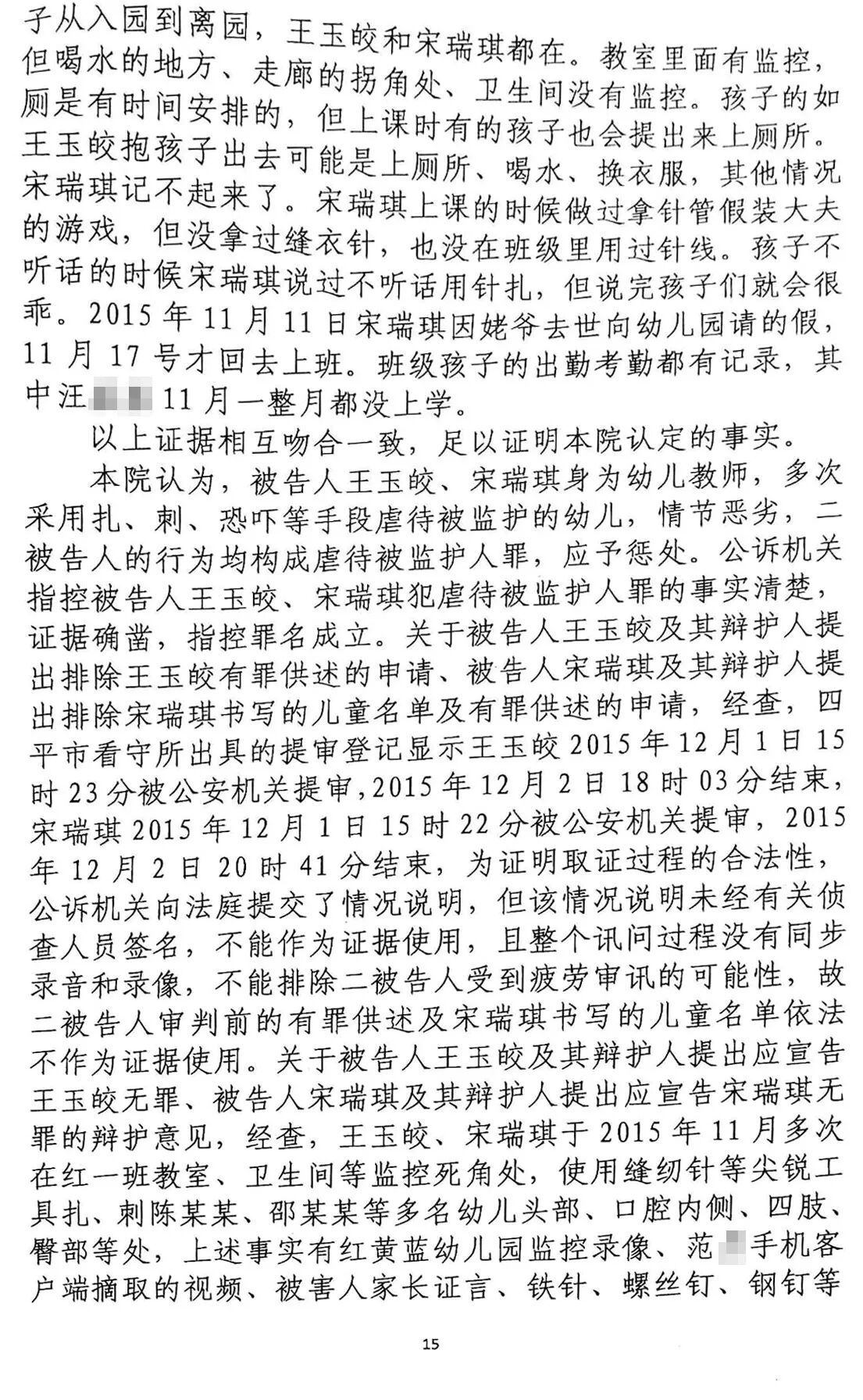 2、经常虐待的行为可认定为本罪,考虑到虐待行为具有一贯性和经常性,虐待行为在实践中表现形式多样,有的是捆绑、殴打、冻饿等肉体折磨,有的是侮辱、辱骂、限制人身自由等精神摧残。就像四平案件,由于孩子表达不清而教师实施恐吓针扎行为都选择在监控死角(厕所、走廊等),虐待行为本身就不容易发现,也很难认定为一惯性和经常性,我想这也会是北京案件的取证难点,因为“偶尔实施的打骂行为”与“一惯连续的虐待行为”的认定对于判断是否入罪的重要因素。