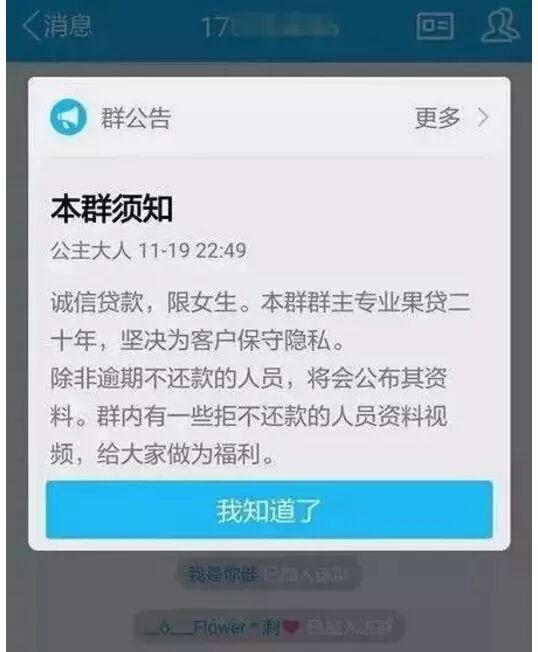 “裸贷”的放贷者会在QQ群内发布广告,想要借款的女大学生会加放贷者私聊。
