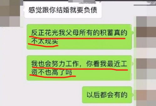 男方说:他们是他们,我也有我的想法。我的父母一年下来也就10万块钱的收入,再有几年父母就要退休了,收入肯定就少了,这个时候花光父母的积蓄买房太不现实了。但是我保证,以后肯定会努力工作,该有的都会有的。