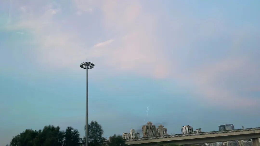 (上图) 清晨5点,从影棚出来随手抓拍一张,同事说想起之前在韩国总部出差的日子,恍如隔世。(下图) 回家的路上,强忍着困意,感慨车窗外清晨的天空,美如油画。