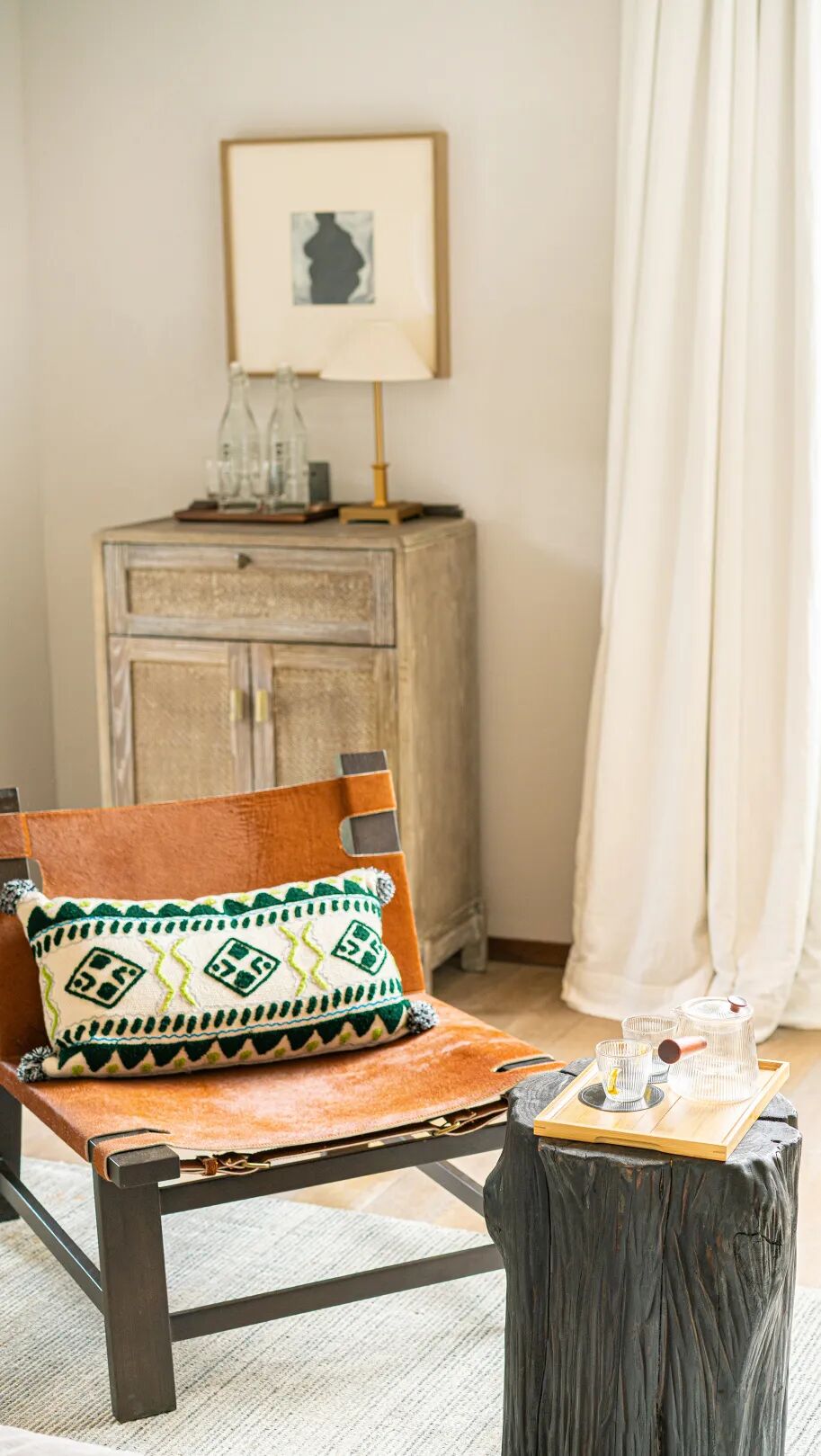 每个院落都各具特色,仿佛一个独立自由的世界,长在自然里,像天生就该生长在那里一样。大里村拥有茶园、竹海、森林,植物花草种类丰富,大自然中人与万物和谐共存的美好景象如甜而不腻的蜜汁流淌而出,如梦幻之所,也是心安之处。而这些自然之景均被收纳于酒店的每一间房间,配合恬淡闲适的室内设计,形成刚好的尺度。