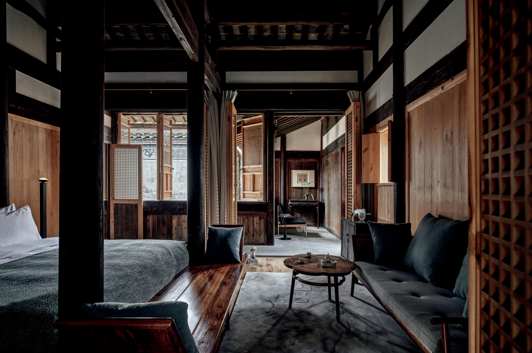 酒店仅有8间客房,以古代文人八雅“琴棋书画诗酒花茶”为命名灵感。除了私人收藏,客房内的其他家具均为定制,采用了名贵的老红木,以延续建筑的清雅气质。
