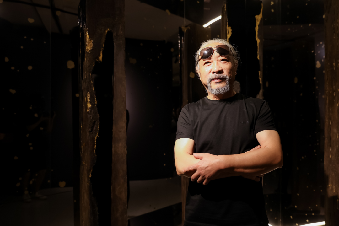 推开展览入口处的门,迎面而来的是K11 Craft & Guild Foundation(简称KCG,是注册于香港的非营利机构)创办人、文化企业家郑志刚博士的沉浸式导览——这位颇具传奇的企业家因各种原因不能来到上海展览现场,特别设计了这一几乎与真人等大的3D影像导览,向来宾介绍“黑漆描金”的奇幻世界,探索中国千年工艺文化对全球的影响。