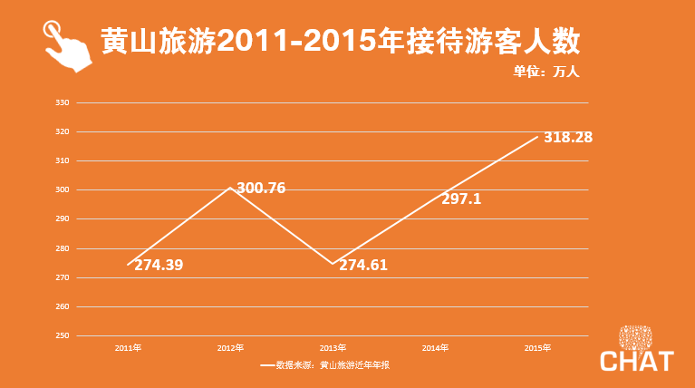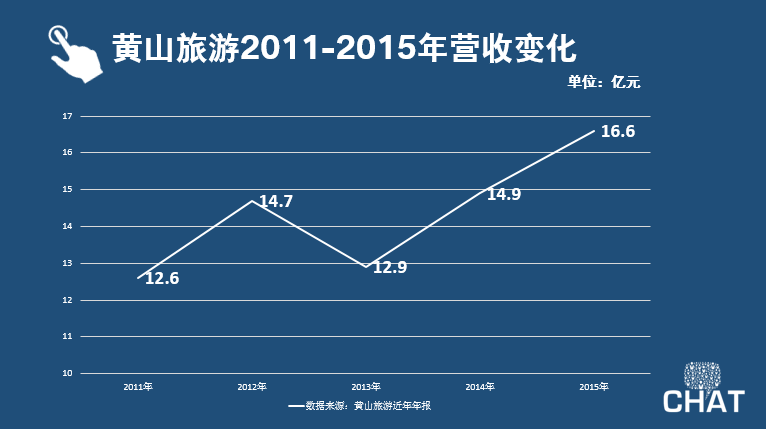 与此同时,伴随着改名的声浪,413日晚间,黄山旅游(600054.SH)公布2015年业绩,年报显示,黄山旅游在2015年共接待进山游客318.28 万人,同比增加21.17 万人,增幅7.1 %。全年实现营业收入16.65 亿元,同比增长11.73%,归属于上市公司股东的净利润2.96 亿元,同比增长41.36%