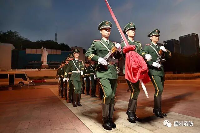 在福州有这样一群青年,他们是五一广场上英气勃发的国旗护卫队队员,脱下礼兵服他们又是出入火场灭火救人的消防兵,青春热血任挥洒,灭火护旗一肩担。这支以“90”后为主,平均年龄只有23岁的队伍,迎着朝阳,伴着晚霞,忠诚坚守,代代传承。
