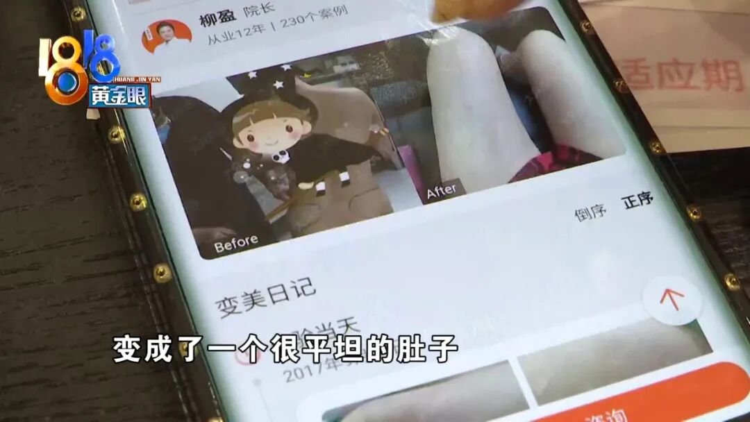 小吴:“一个有赘肉的肚子,变成了一个很平坦的肚子。还有一个案例就是腿的案例,这个腿的案例瘦了很多,我最终做了冷冻溶脂,花了一万五,做了四个位置,结果没有效果。”