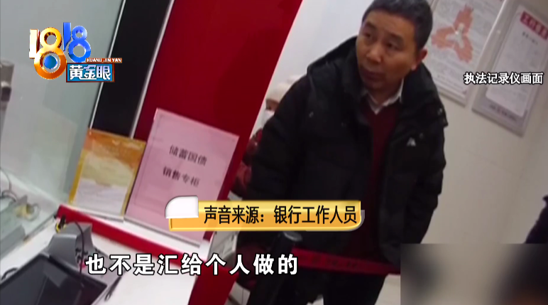 银行工作人员:“(主要是你这个钱,你要做投资,也不是汇给个人做的)你汇嘛,要汇到对公账户上去,哪怕个人要投资也要汇到对公账户的,不是个人(账户)的。”