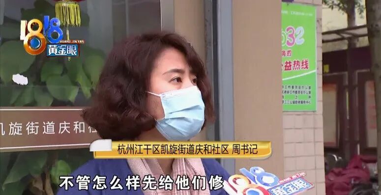 杭州江干区凯旋街道庆和社区 周书记:“我们社区、物业这边先出资,不管怎么样,先给他们修,修好了以后人员能够住了再说,至于后期的一些其它的费用,等事故鉴定结果出来后,或者派出所这边回复可以进行相关的处理了,我们会叫他们来协商,协商应该是赔偿的协商。”