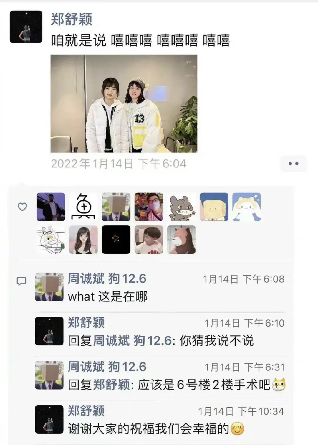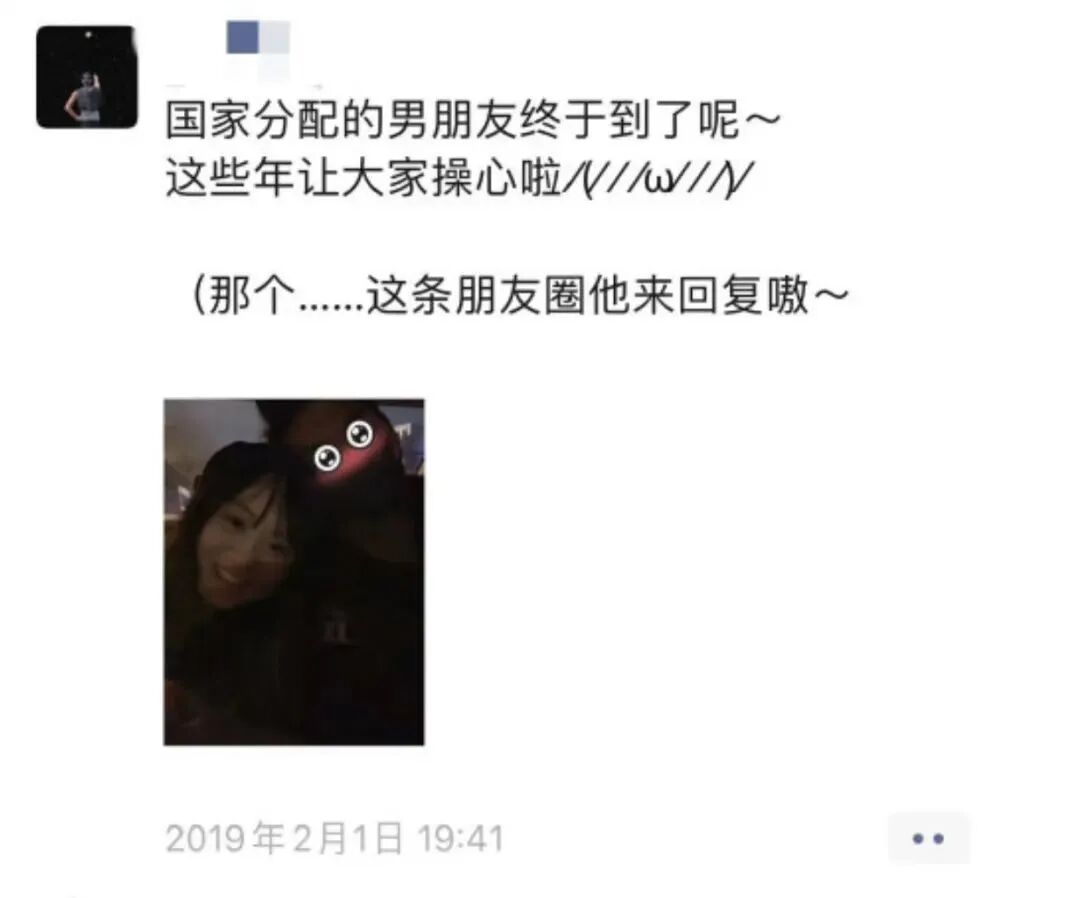 ▼朋友圈的官宣用光线贼差的图还不忘给男方打码,