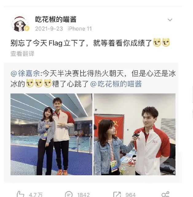 ▼最开始土土还认为徐嘉余全运会上对冰冰的粗箭头是在蹭热度,