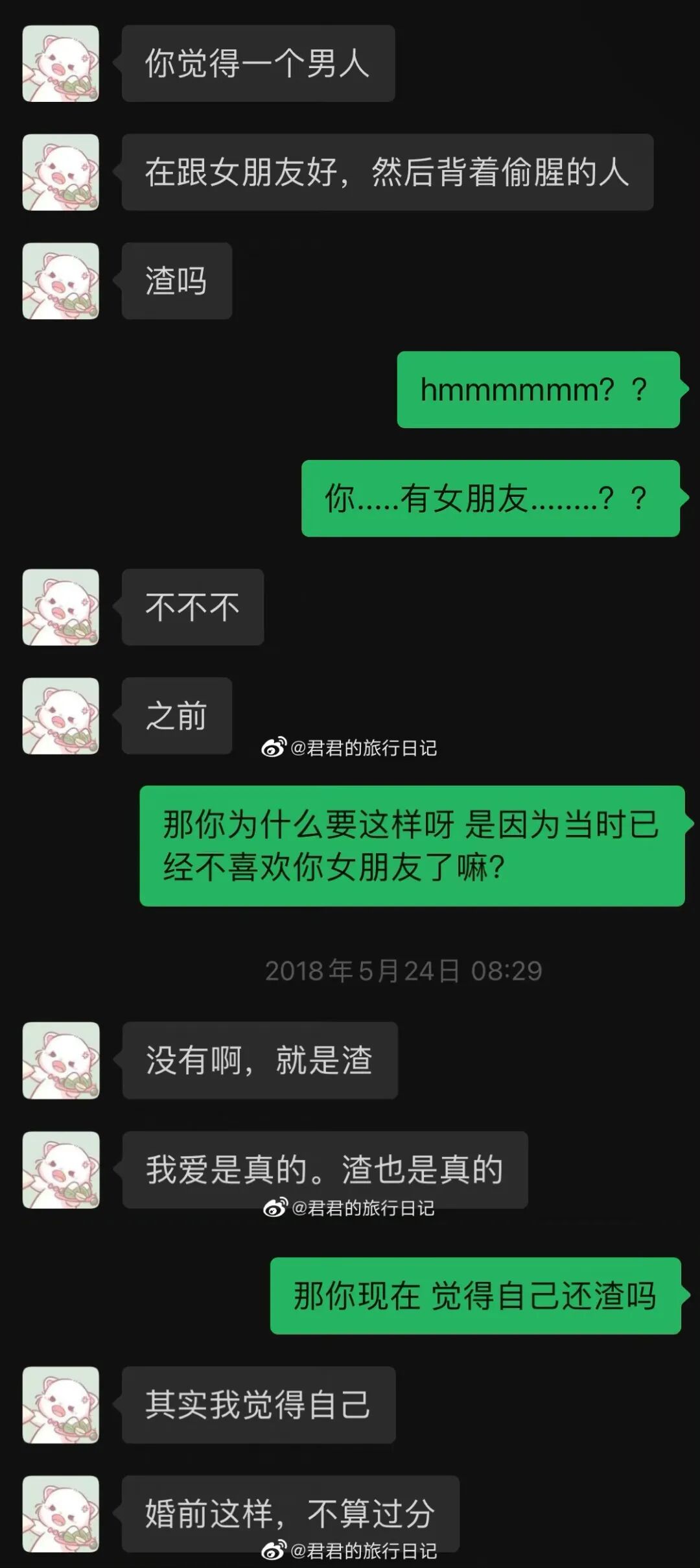 说自己爱是真的,渣也是真的,