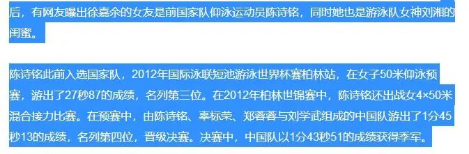 ▼徐嘉余对外公开的女朋友广东游泳队的陈诗茗,