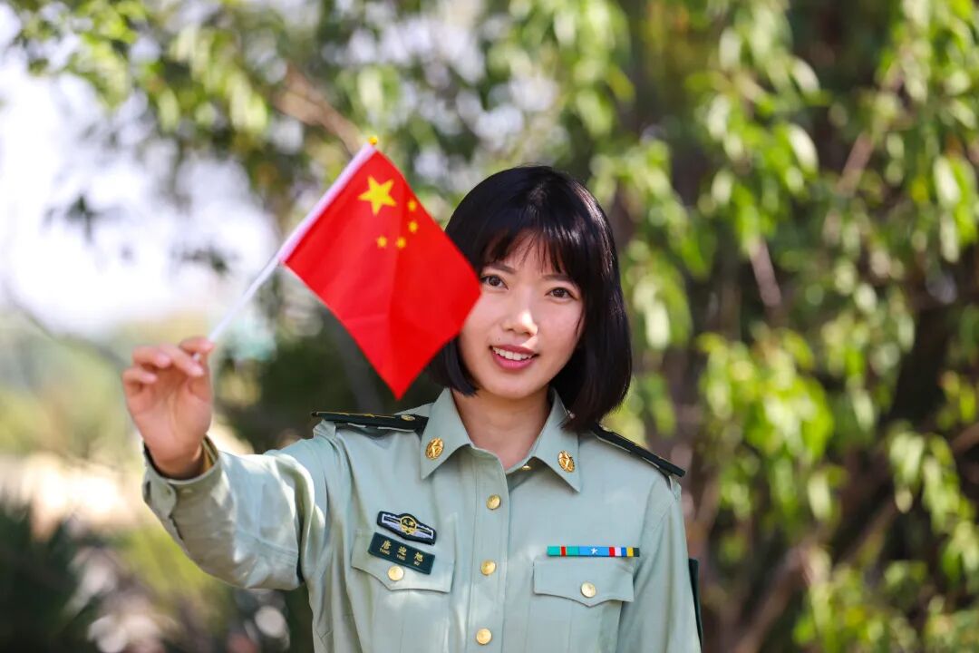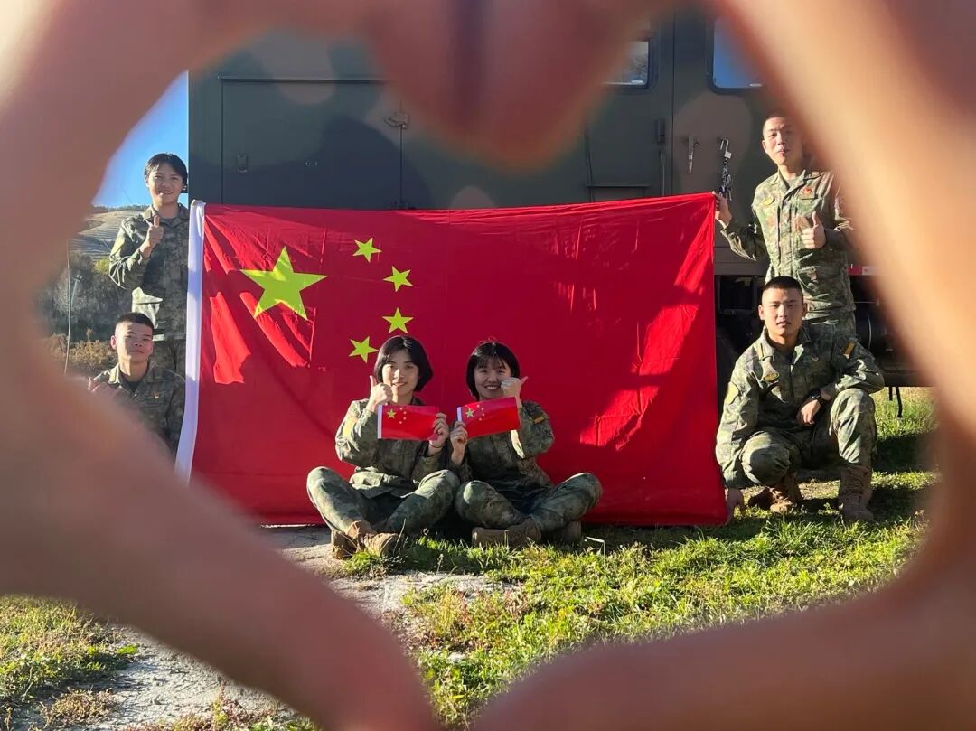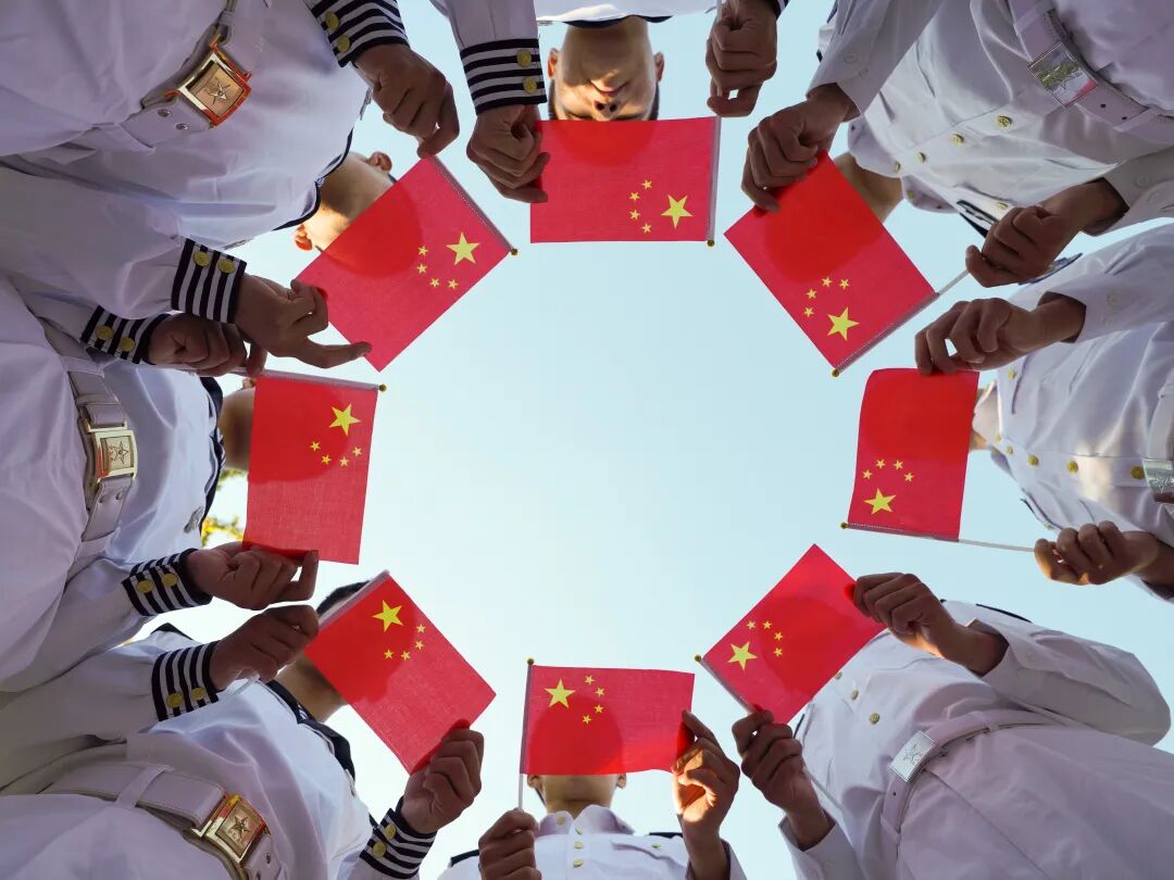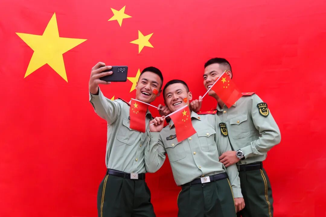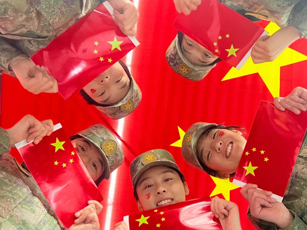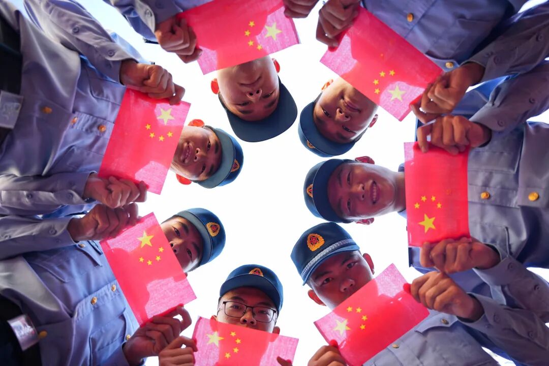 纷纷与国旗同框合影