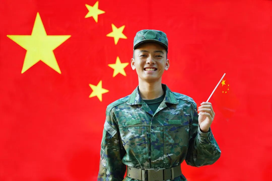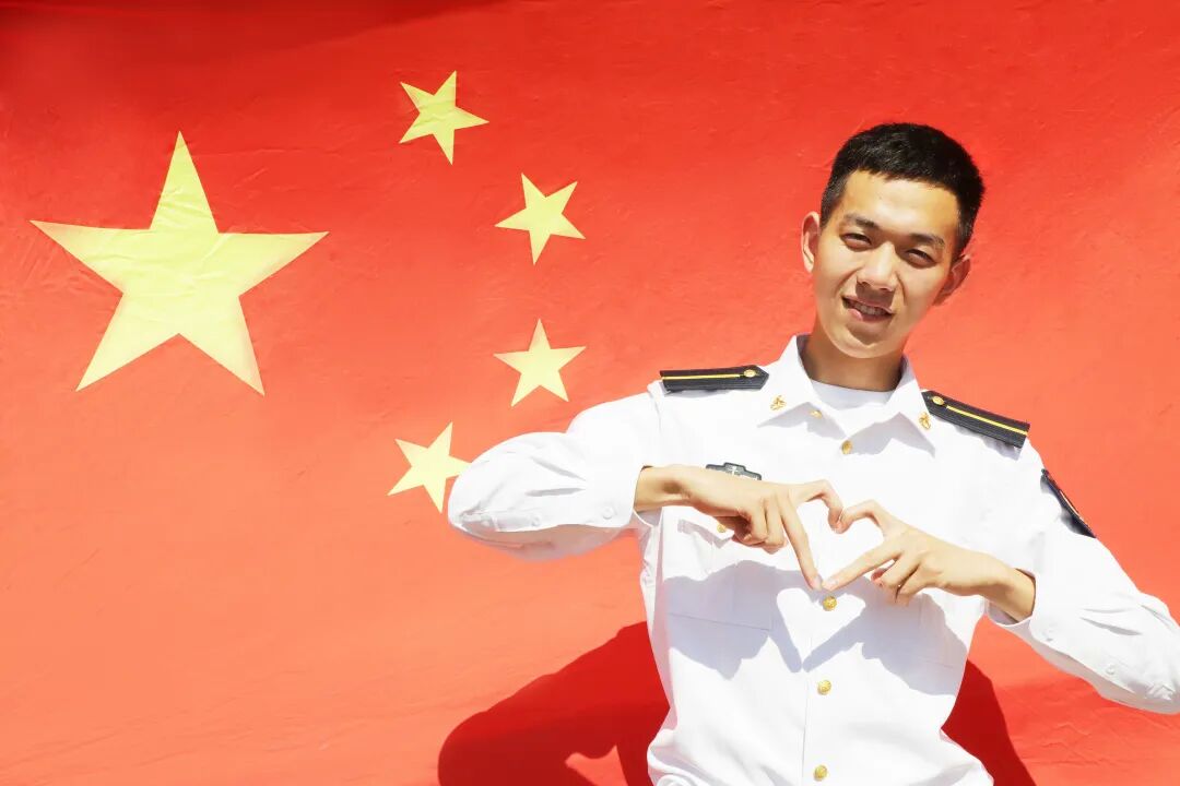 与国旗同框合影