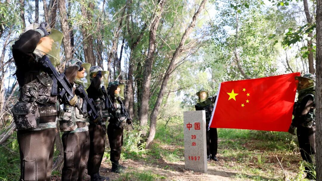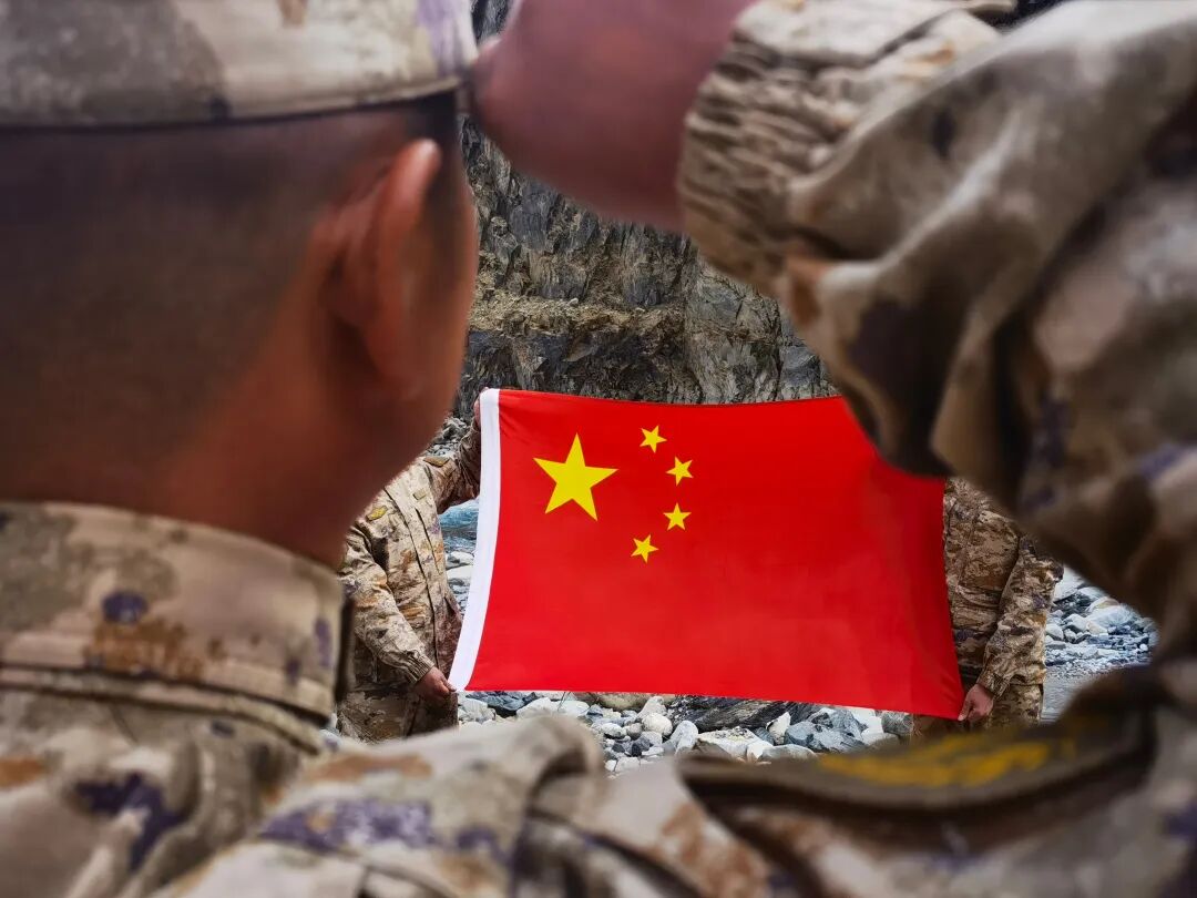 在加勒万河畔向国旗宣誓