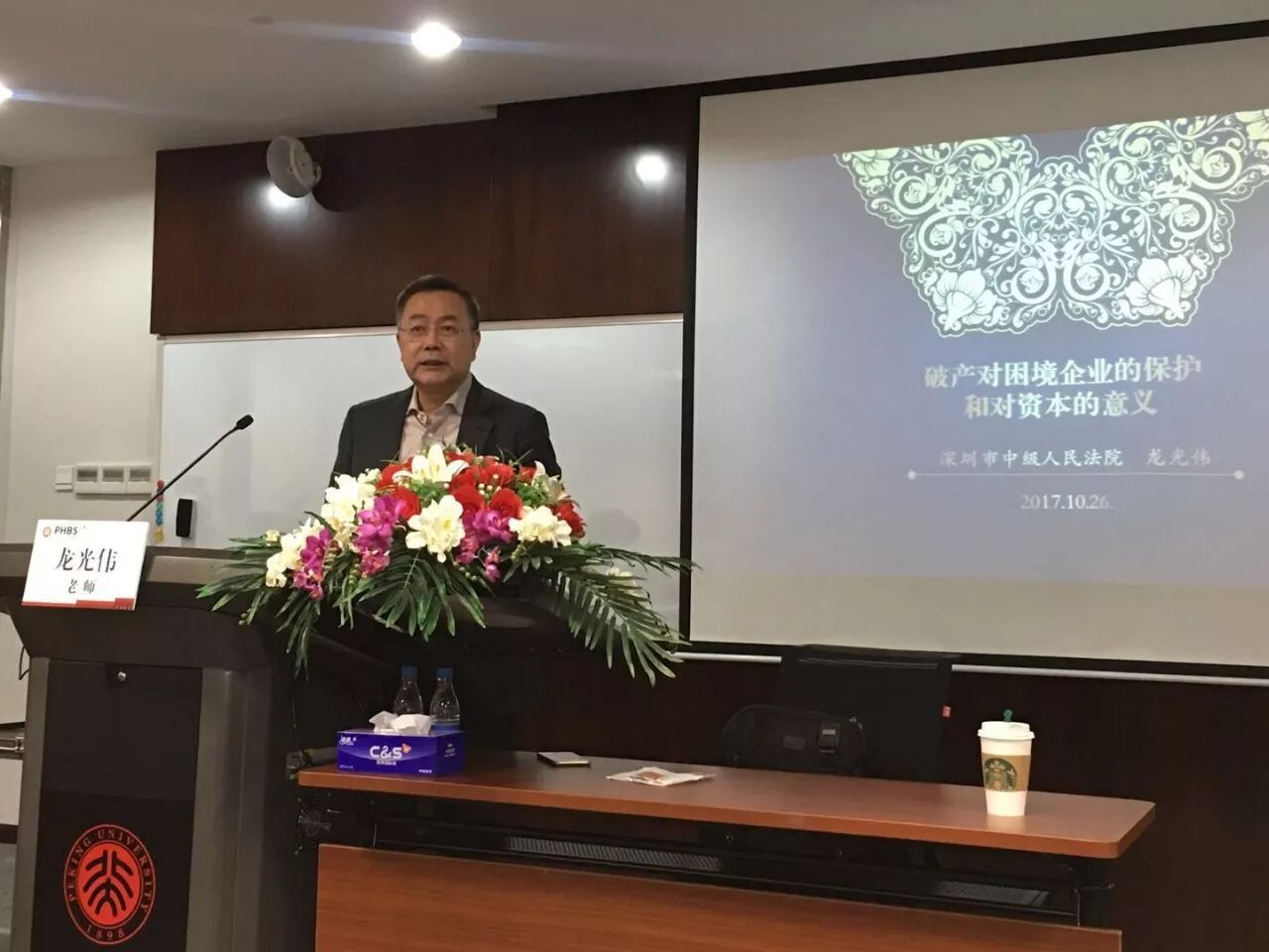 2017年10月26日下午,第五期北大汇丰EDP企业家沙龙——“破产对困境企业的保护和对资本的意义”在337教室举行。此次活动邀请到深圳市中级人民法院副院长龙光伟为同学们解读破产保护对困境企业的救助和重整作用。