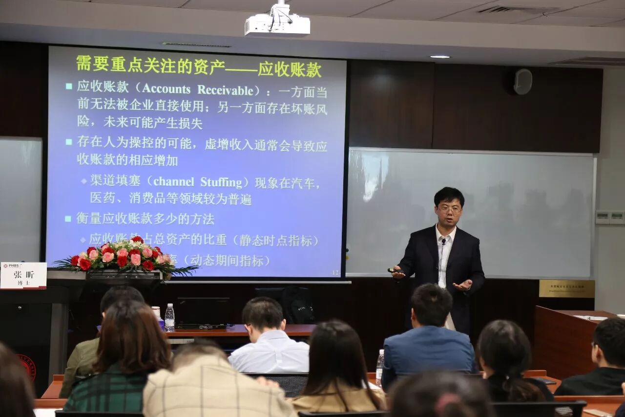 在短短的两三个小时中,张昕教授为大家讲解了与收益、风险相关的三种财务结构,分析了应收账款、存货、商誉、货币资金等需要重点关注的资产以及合理调整资产结构、优化资源配置需要关注的债务结构等内容,通过财务数据分析了不同行业中代表企业的财务状况与经营状况,如乐视网、青岛啤酒、南方航空、永辉超市、华谊兄弟等。讲座中张教授还介绍了综合分析公司总收益情况的杜邦分析法,并带领大家分析了几个公司的应收账款周转率和资产负债率的实际状况。张教授的精彩讲解,为来自各行各业的企业高级管理人员提供了许多理论知识和实战经验。